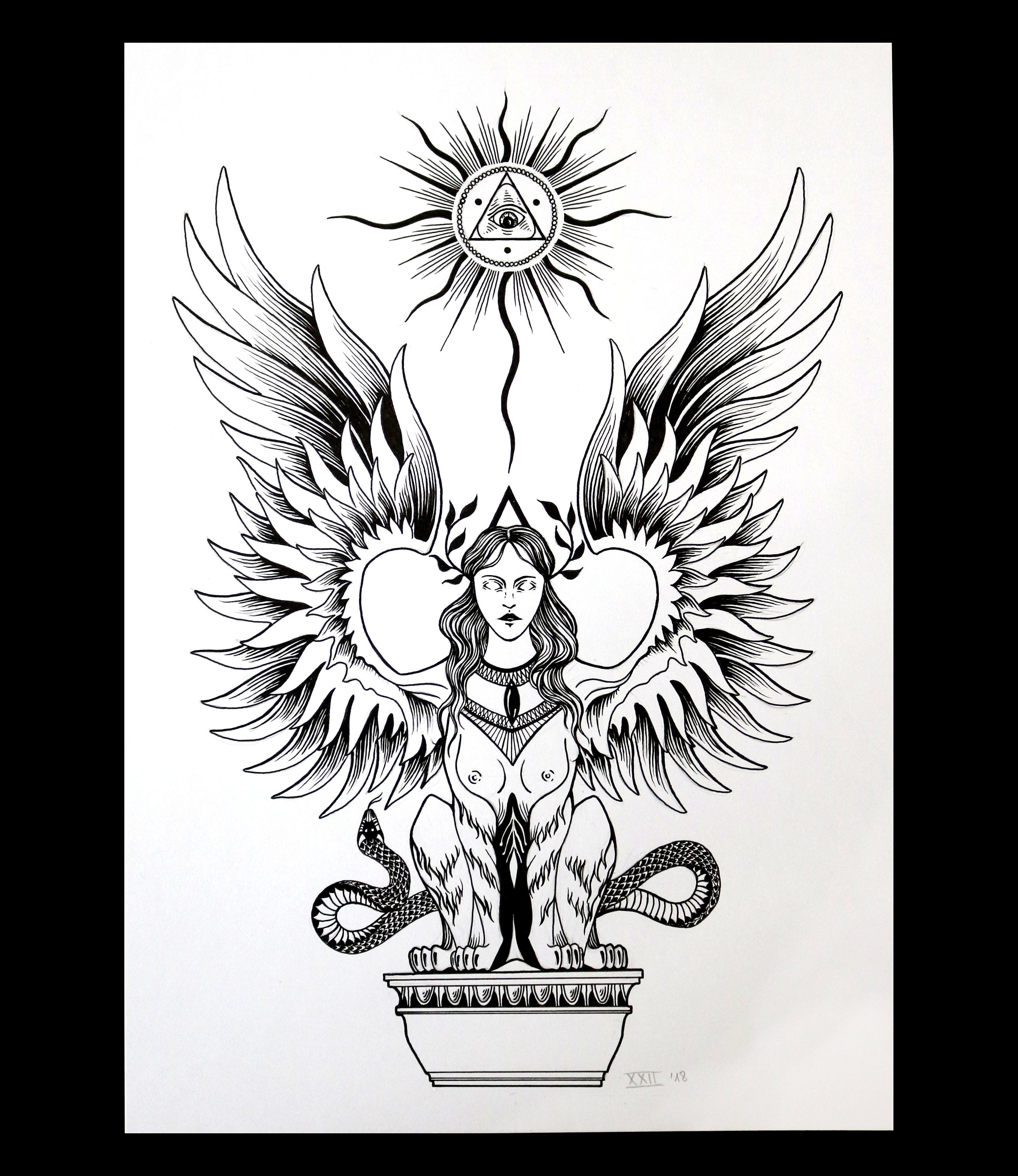 Greek Sphinx Original Ink Illustration Etsy Uk